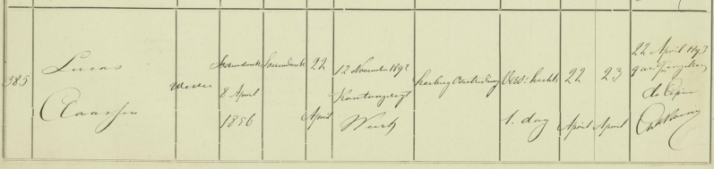 Afbeelding: Inbewaringstelling voor drie maanden van Cornelis Klaassen, oud 19 jaar, in verband met landloperij 1 maart 1883 (4).