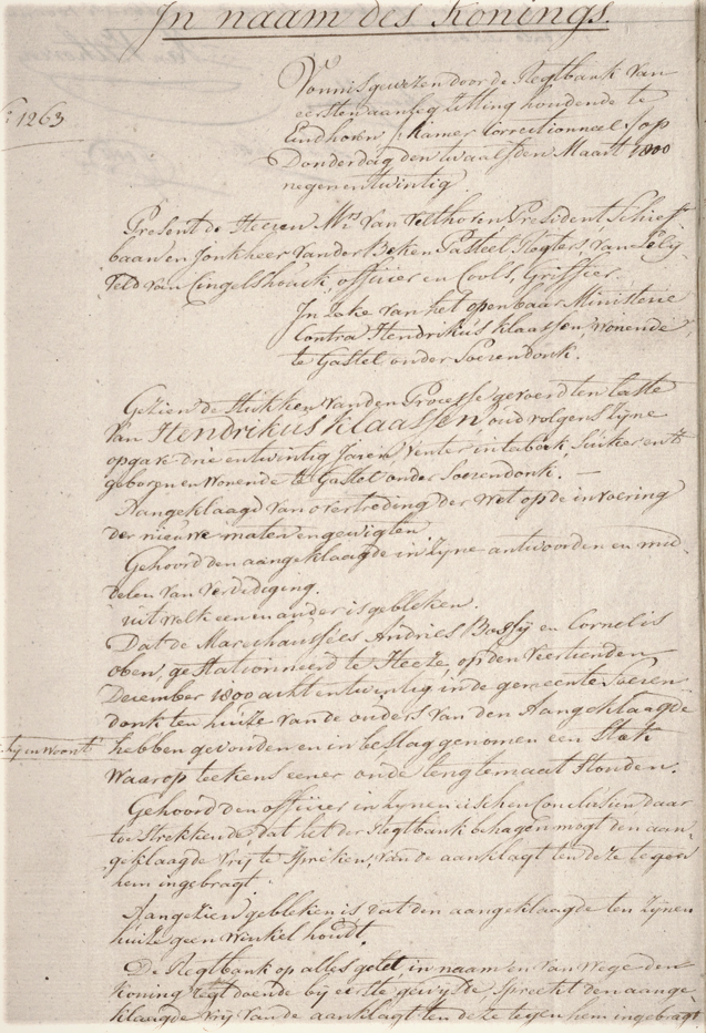 Afbeelding: Inbewaringstelling voor 1 dag van Hendrikus Klaassen, oud 21 jaar, in verband met een eenvoudige moedwillige mishandeling in vereniging te Stratum, 29 december 1880 (1).