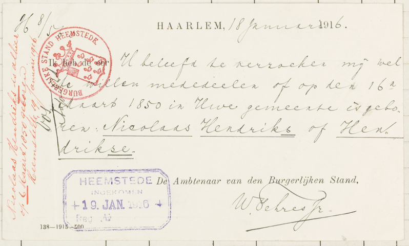 3 Bevolkingsregister gemeente Haarlem, 1900-1924, Hen-Henl, blad 392.