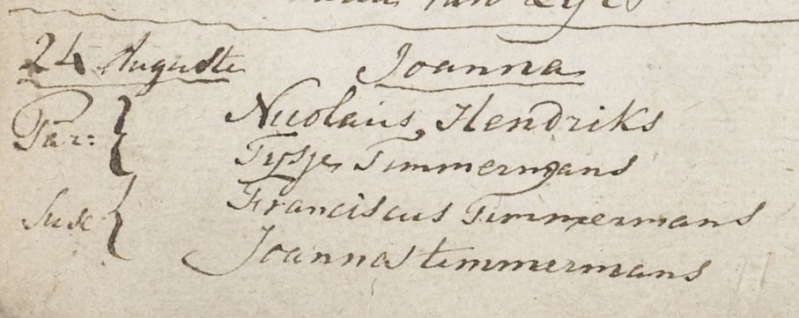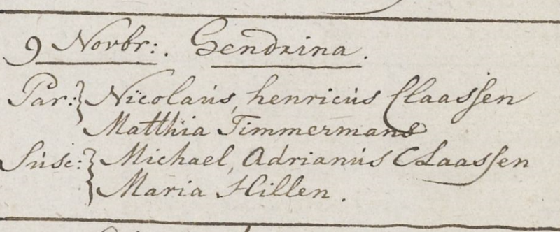 Gedoopt te Maarheeze (RK Sint Gertrudis), 3 december 1724, dochter van Nicolaus Hendrickx en Josijna Somers (1).