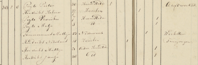 3 ELISABETH PELLEMANS, Beroep: kleerbleekersmeid (5). Gehuwd te Heemtede, 21 november 1821 met JACOBUS OUDSHOORN (5).