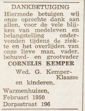 Beroep: koopman (1), boomkweker (3), venter (4). Geboren te Heiloo, zoon van Arie Klaase en Maartje Halfschepel. Overleden te Velsen, 4 juni 1950, oud 76 jaar (5). 1x Gehuwd met PETRONELLA SINNIGE. 2x Gehuwd met MARIA ANNA CATHARINA BARTELSMAN. Adres: 1901 Heemskerk, Noorddorperbuurt 64b (1), 1902 Heemskerk, Noorddorperbuurt 64a (2), 1908 Heemskerk, wijk B, nr, 64b (4), 1911 Heemskerk, wijk B, nr. 64 (3).