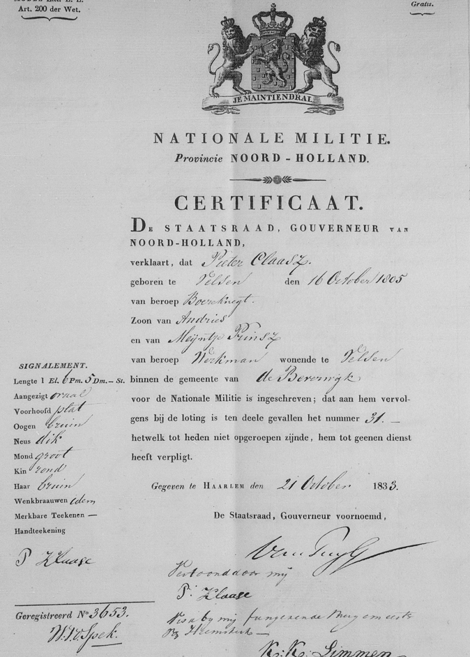 1 CLAAS PELLEMANS ook geschreven KLAAS PELLEMANS, Beroep: tuinder (8). Overleden te Beverwijk, 20 oktober 1880, oud ruim 83 jaar (10). Gehuwd te Wijk aan Zee en Duin, 18 juli 1850 met GEZINA DE GROOT (9). Adres: 1880 Beverwijk, Arendsweg nr. 961 (10).