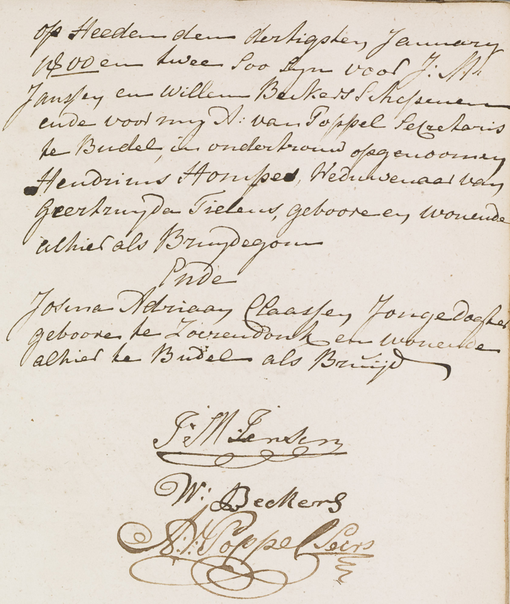 Afbeelding: Huwelijk (Schepenbank) van Claes Hendricx en Josina Goort Somers, Budel 1722.