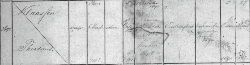 Beroep: houtdraaier, draaier (2). Geboren te Heeze, 6 maart 1870 (abusievelijk ook 1867 en 1868 (2) als geboortejaar genoteerd) als Theodorus, zoon van Martinus Klaassen, wever en Peternel van Bakel (1). Overleden te Hoorn, 3 februari 1892, oud 23 jaar, ongehuwd (4). Adres: 1891 Veenhuizen, Gesticht II (2), 1892 Hoorn, Aan 't Hoofd/Oostereiland, Bedelaarsgesticht (4), leidde een zwervend bestaan.